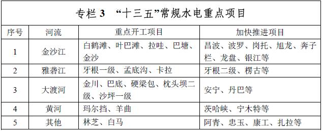 1、積極推進(jìn)大型水電基地建設(shè)。在做好環(huán)境保護(hù)、移民安置工作和統(tǒng)籌電力市場(chǎng)的基礎(chǔ)上,繼續(xù)做好金沙江中下游、雅礱江、大渡河等水電基地建設(shè)工作;適應(yīng)能源轉(zhuǎn)型發(fā)展需要,優(yōu)化開發(fā)黃河上游水電基地。到2020年,基本建成長江上游、黃河上游、烏江、南盤江紅水河、雅礱江、大渡河六大水電基地,總規(guī)模超過 1億千瓦。積極推進(jìn)金沙江上游等水電基地開發(fā),著力打造藏東南“西電東送 ”接續(xù)基地!笆濉逼陂g,新增投產(chǎn)常規(guī)水電4000萬千瓦,新開工常規(guī)水電6000萬千瓦。