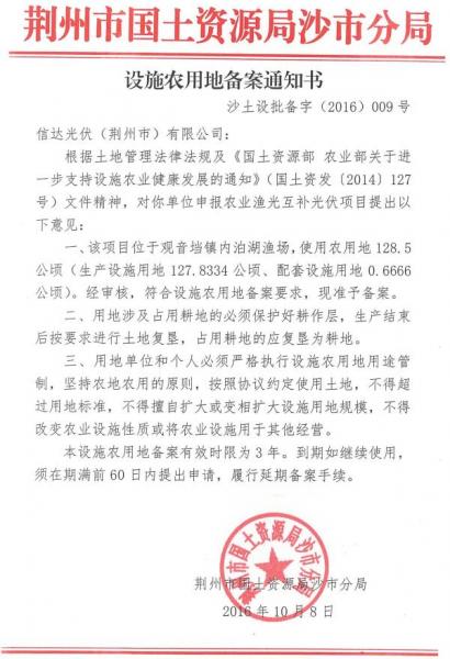 此外,在發(fā)給澎湃新聞的傳真函件中,信達(dá)光伏還稱,沙市區(qū)觀音垱鎮(zhèn)內(nèi)泊湖漁場在國土局相關(guān)土地性質(zhì)上顯示為一般農(nóng)業(yè)用地。