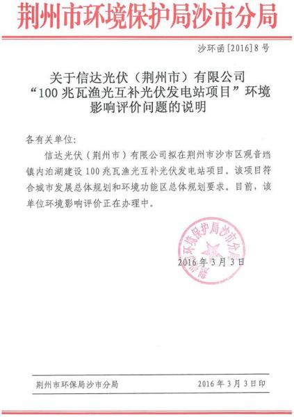 盡管有相關(guān)批文,但該企業(yè)也承認(rèn),項目環(huán)評報告的流程還沒走完。荊州市沙市區(qū)環(huán)保局綜合科的一名工作人員此前也證實,信達(dá)光伏在今年春節(jié)前來環(huán)保局綜合科詢問過意見,“確實沒有(公開)環(huán)評信息,因為還沒有被審批,還在審核過程中,還沒批”。