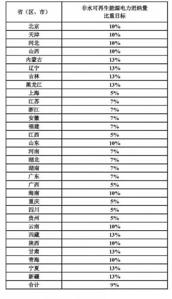 1.2020年各。ㄗ灾螀^(qū)、直轄市)行政區(qū)域全社會用電量中非水電可再生能源電力消納量比重指標(biāo)