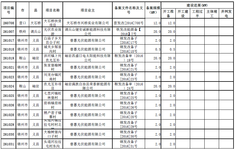 遼寧省普通光伏電站項(xiàng)目建設(shè)進(jìn)展信息 共4.3GW備案光伏項(xiàng)目