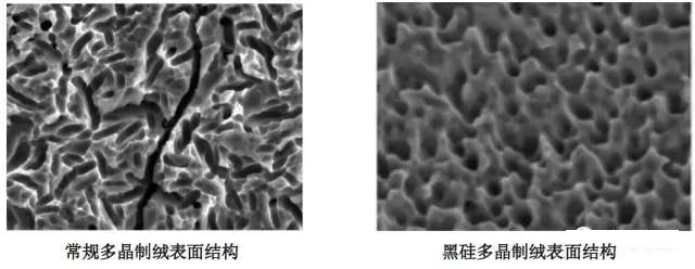 多晶硅片中具有若干不同晶向的晶體,因此單晶廣泛應(yīng)用NaOH溶液各向異性制絨工藝并不適用于多晶制絨。目前通行的多晶硅制絨工藝主要是HF/HNO3混合溶液的缺陷腐蝕制絨法,此方法制絨后的硅片反射率約為18%,高于常規(guī)單晶制絨后11%的反射率,不利于多晶電池對入射光線的有效吸收。為了進一步降低多晶硅片制絨后的反射率,采用特殊制絨工藝在多晶硅片表面形成納米結(jié)構(gòu),增加有效多晶硅片對入射光線的吸收。采用這種制絨工藝生產(chǎn)的多晶電池有更低的反射率,此方法制絨的多晶電池從肉眼來看比普通多晶電池更黑,因此這種工藝被稱為黑硅制絨。