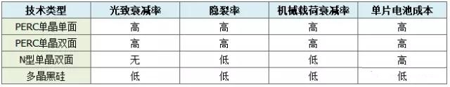 多晶黑硅電池和N型單晶雙面電池在光致衰減率、破片率和機械載荷衰減率等方面均明顯好于PERC單晶電池。因此相比于PERC單晶電池,多晶黑硅電池和N型單晶電池將為光伏電站帶來更為穩(wěn)定的發(fā)電量,光伏電站業(yè)主的投資回報也可以得到更好的保障。光伏電站作為預(yù)期運營25年、30年乃至更長時間的投資項目,除了組件初始功率外,還需要關(guān)注組件功率在整個電站生命周期的穩(wěn)定性和衰減率,以保證穩(wěn)定的投資回報。