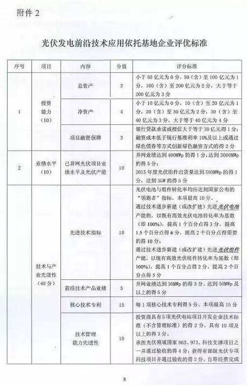 近日,國家能源局綜合司發(fā)出了名為《國家能源局綜合司關于2017年建設光伏發(fā)電先進技術應用基地有關要求的通知》的征求意見函,對光伏發(fā)電先進技術應用基地建設的規(guī)劃、優(yōu)選、評分規(guī)則等做意見征集,通知全文如下所示:! ⊥ㄖ蟀l(fā)展改革委、工業(yè)和信息化部、財政部、國家認監(jiān)委辦公廳、各。▍^(qū)、