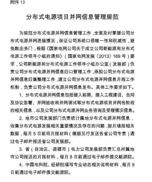 2.本意見在《國家電網(wǎng)公司關(guān)于做好分布式電源并網(wǎng)服務(wù)工作的意見》基礎(chǔ)上,明確分布式電源并網(wǎng)全過程管理的職責(zé)分工、流程銜接和工作要求。