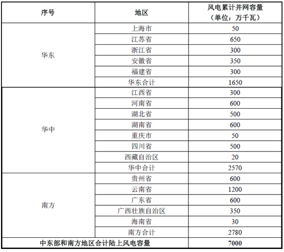 2020 年中東部和南方地區(qū)陸上風電發(fā)展目標如下: