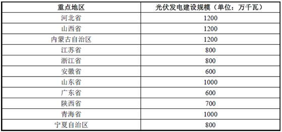 重點地區(qū)2020 年光伏發(fā)電建設規(guī)模如下: