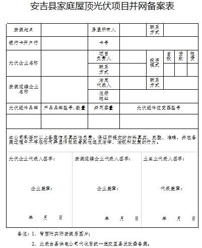 附件6:安吉縣家庭屋頂光伏項目并網備案表