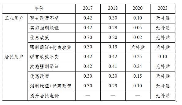 如果2018年能夠推出綠色證書強(qiáng)制交易,考慮利用三年左右的時(shí)間,通過適宜的政策設(shè)計(jì),使綠色證書的價(jià)格達(dá)到0.05元/千瓦時(shí)左右,到2023年再達(dá)到0.1元/千瓦時(shí)左右,則預(yù)期2023年前光伏發(fā)電可以在上網(wǎng)側(cè)實(shí)現(xiàn)全面平價(jià)。
