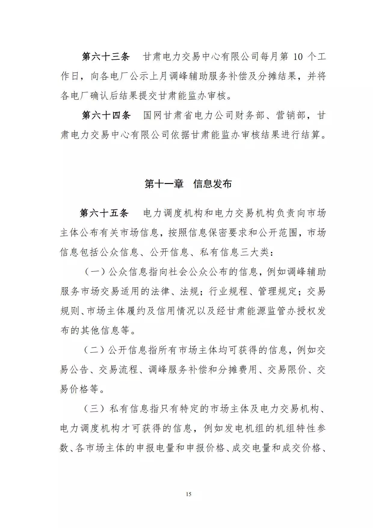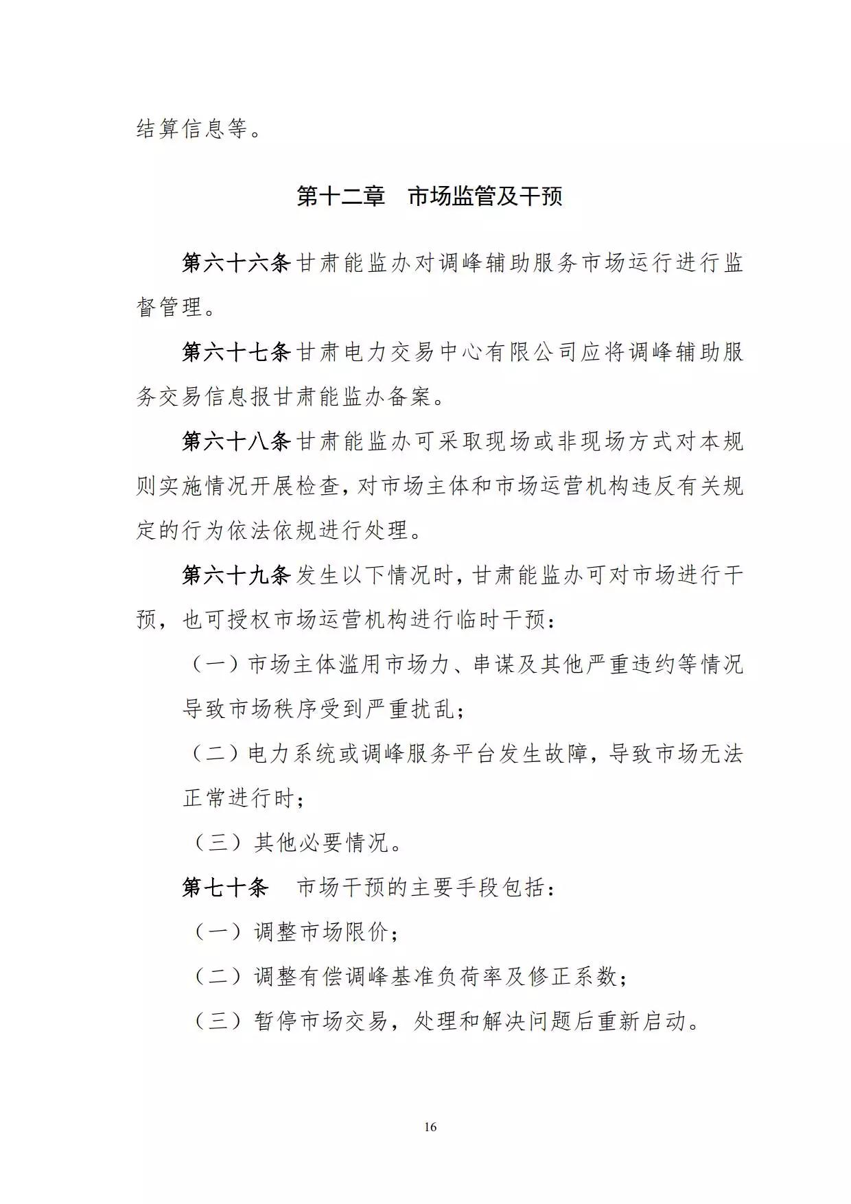 9月12日,甘肅能監(jiān)辦發(fā)布了《甘肅電力調(diào)峰輔助服務(wù)市場運營規(guī)則(試行)》的征求意見稿。隨著甘肅省電力輔助服務(wù)市場運營規(guī)則的征求意見,甘肅電力輔助服務(wù)市場也準(zhǔn)備開展了,電改在甘肅省又邁進了一步。 重點如下: 1、電力調(diào)峰輔助服務(wù)市場的市場主體為已取得發(fā)電業(yè)務(wù)許可證(包括豁免范圍內(nèi))的省內(nèi)發(fā)