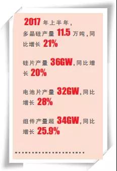 在整個行業(yè)的積極求索和一系列利好政策支持下,中國光伏產(chǎn)業(yè)取得了舉世矚目的成就。規(guī)模上,2017年上半年,多晶硅產(chǎn)量11.5萬噸,同比增長21%;硅片產(chǎn)量36GW,同比增長20%;電池片產(chǎn)量32GW,同比增長28%;組件產(chǎn)量超過34GW,同比增長25.9%以上。其中,電池、硅片產(chǎn)量連續(xù)多年保持世界首位。