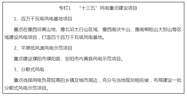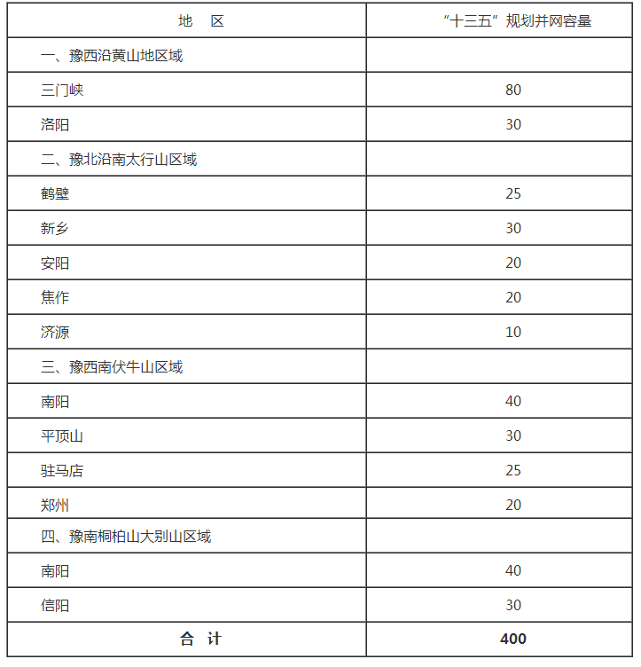 “十三五”時期,全省規(guī)劃建設(shè)豫西、豫北、豫西南、豫南等地區(qū)四個百萬千瓦級風(fēng)電基地,到2020年建成并網(wǎng)裝機規(guī)模400萬千瓦左右。