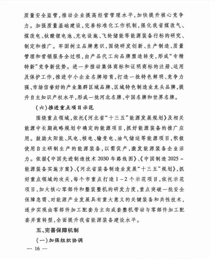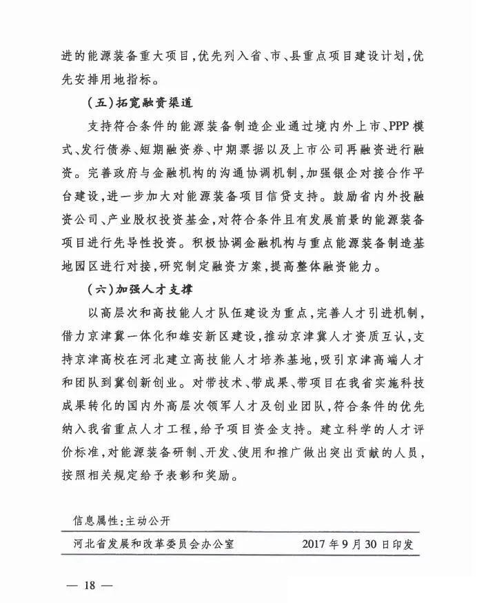 河北省發(fā)展和改革委員會等五部門關于印發(fā)《河北省加快推進能源裝備發(fā)展實施意見》的通知各市(含定州、辛集市)人民政府,雄安新區(qū)管委會,省政府有關部門,各相關企業(yè): 為貫徹落實《中國制造2025-能源裝備實施方案》《能源技術革命創(chuàng)新行動計劃(2016-2030年)》和《河北省“十三五”能源發(fā)展規(guī)劃》,