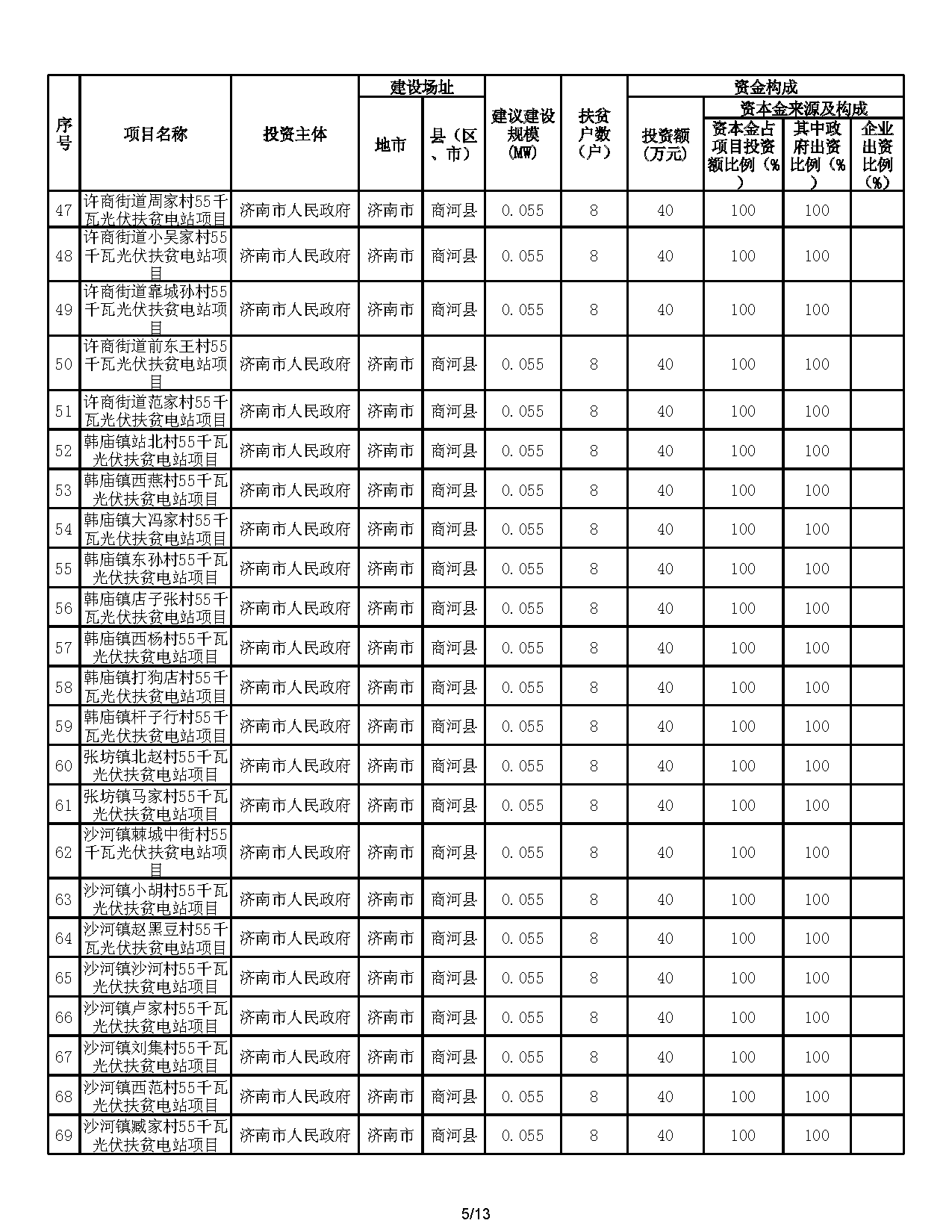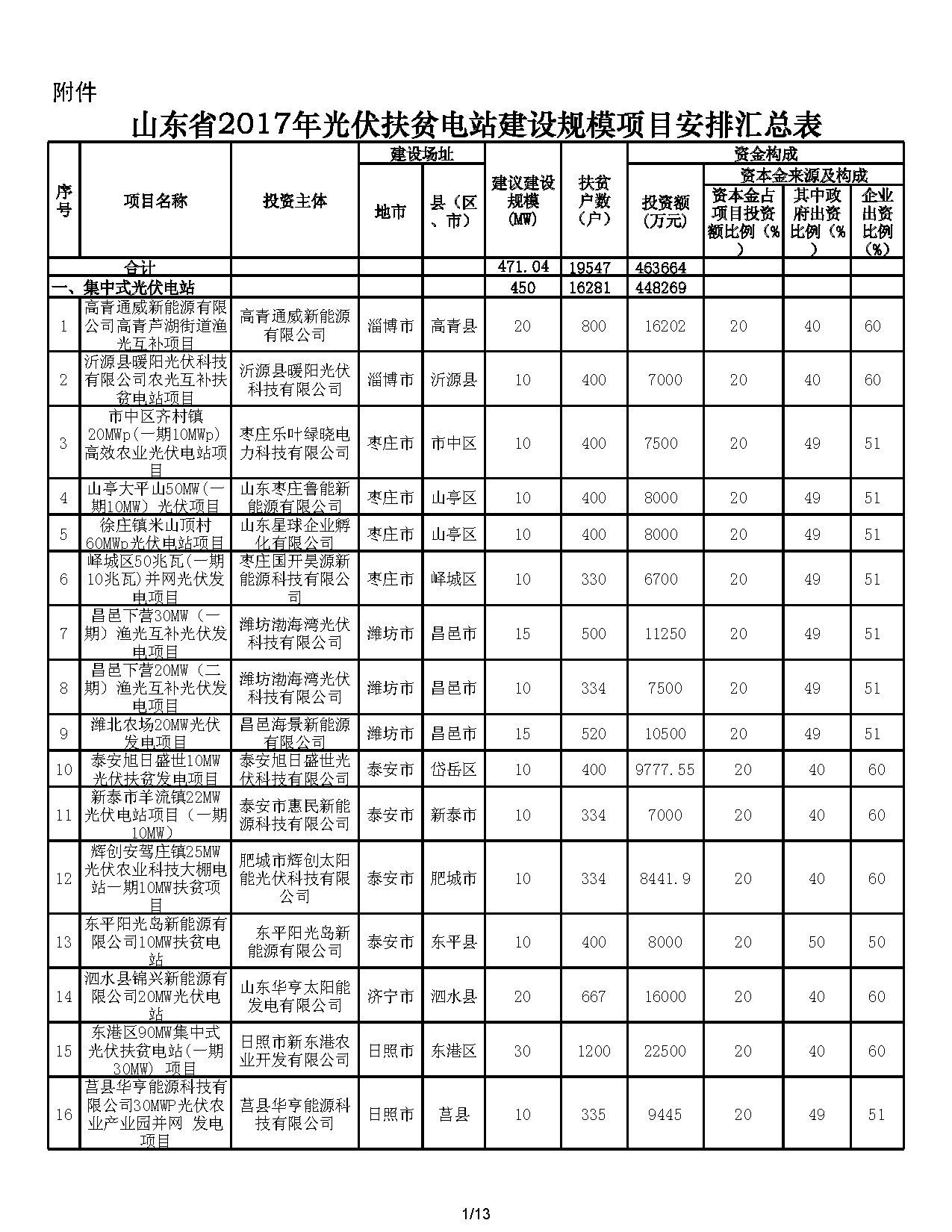 2017年共安排濟(jì)南、淄博等13個(gè)市光伏扶貧電站建設(shè)規(guī)模內(nèi)項(xiàng)目257個(gè),建設(shè)規(guī)模471.04兆瓦,扶貧戶數(shù)19547戶。