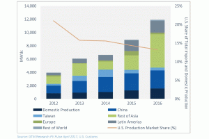 但實際上早在2012年美國就已經(jīng)出臺了針對中國太陽能產(chǎn)品出口的特別關(guān)稅,稅率也是30%。但幾年過去以后并沒有什么特別的效果:雖然中國對美國太陽能產(chǎn)品的直接出口當(dāng)時在一年