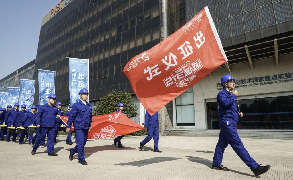 (天合富家質(zhì)量巡檢總隊(duì)在光伏科學(xué)與技術(shù)國(guó)家重點(diǎn)實(shí)驗(yàn)室前鄭重宣誓▲)