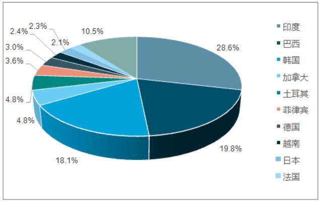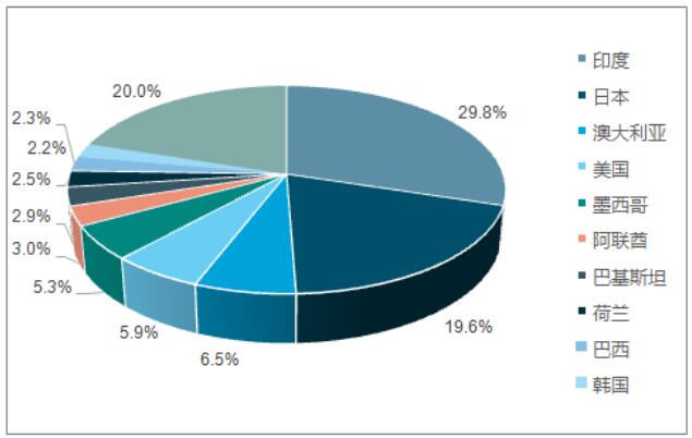 根據(jù)調(diào)查數(shù)據(jù)顯示,2017年印度實(shí)現(xiàn)光伏裝機(jī)量為9.63GW,新增裝機(jī)占全球占比約10%,并且印度是中國(guó)組件和電池最重要的出口市場(chǎng),根據(jù)調(diào)查數(shù)據(jù)顯示,2017年中國(guó)太陽(yáng)能電池的出口額有28.6%是由同印度貿(mào)易貢獻(xiàn)的,印度市場(chǎng)占組件出口份額的29.8%,可以說(shuō)是最重要的海外市場(chǎng),中國(guó)出口約1.2GW電池,9GW組件到印度,印度是中國(guó)光伏制造不容忽視的市場(chǎng)。