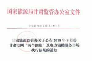 近日,甘肅能源監(jiān)管辦公布2018年9月份甘肅電網(wǎng)“兩個細(xì)則”及電力輔助服務(wù)市場執(zhí)行結(jié)果。詳情如下: