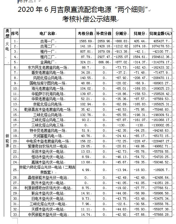 2020年6月新疆電網(wǎng)“兩個(gè)細(xì)則”考核補(bǔ)償結(jié)果(光伏)公示