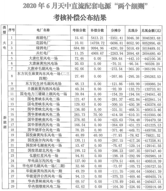 關于公布2020年6月新疆電網、天中、吉泉直流配套電源“兩個細則”考核補償結果的通知如下: