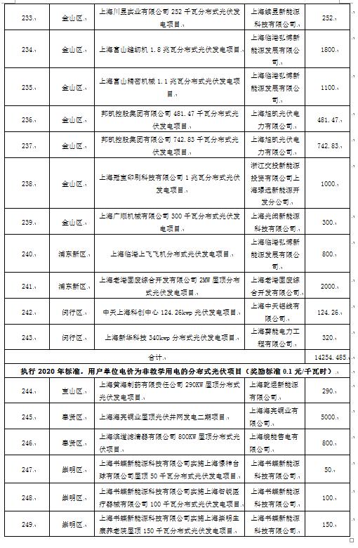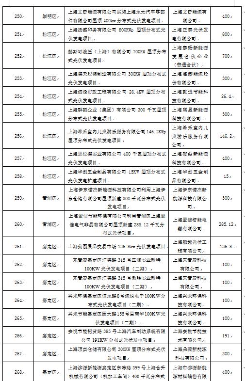 上海市發(fā)展和改革委員會(huì)29日發(fā)布2020年度可再生能源和新能源發(fā)展專項(xiàng)資金獎(jiǎng)勵(lì)目錄(草案)公示,其中,光伏項(xiàng)目290個(gè)。詳情如下:根據(jù)《上海市可再生能源和新能源發(fā)展專項(xiàng)資金扶持辦法》(滬發(fā)改能源〔2016〕136號(hào))、《上海市可再生能源和新能源發(fā)展專項(xiàng)資金扶持辦法(2020版)》(滬發(fā)改規(guī)范〔2020〕7號(hào)),市