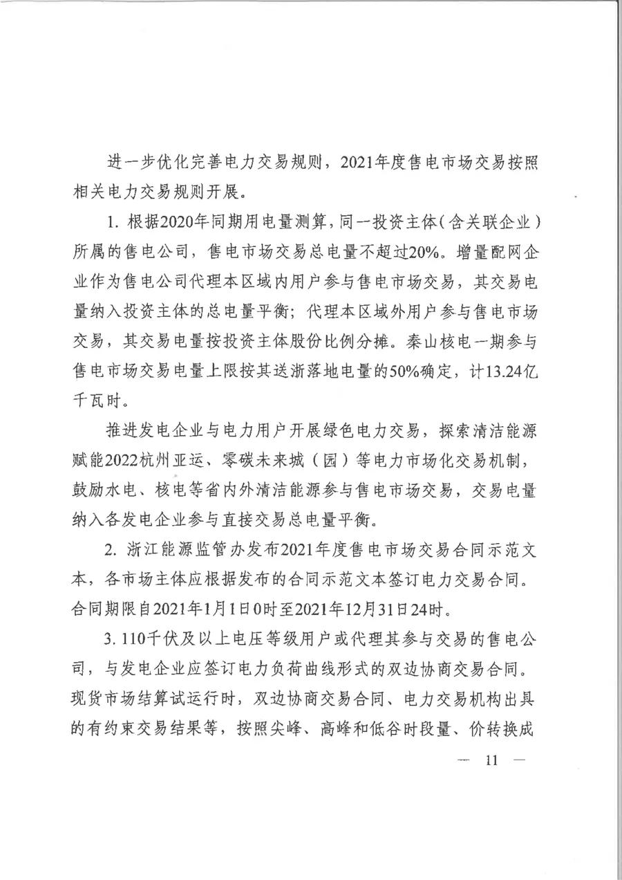 近日,浙江省發(fā)展改革委、浙江省能源局、浙江能源監(jiān)管辦聯(lián)合印發(fā)《2021年浙江省電力直接交易工作方案》,公布了浙江省普通直接交易和售電市場(chǎng)交易各項(xiàng)安排。2021年,全省可參與年度電力直接交易用戶(hù)數(shù)量將達(dá)到20多萬(wàn)家。2021年,浙江省安排電力直接交易電量2100億千瓦時(shí),較2020年同比增長(zhǎng)5%。其中:普通直接交易