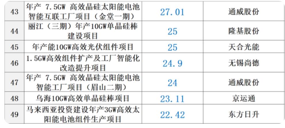 從2020年至今,光伏行業(yè)公布的擴張項目總量超過130個,總投資額超過5000億元。那么,硅料、硅棒、硅片、電池、組件、逆變器、設備、輔材等不同環(huán)節(jié)的項目建設成本是多少?黑鷹光伏統(tǒng)計了超過50個光伏重大項目的關鍵投資數(shù)據(jù),基本涵蓋光伏各核心產(chǎn)業(yè)鏈,主要統(tǒng)計信息為項目名稱、投資預算、建設期限、施工地點及建設成
