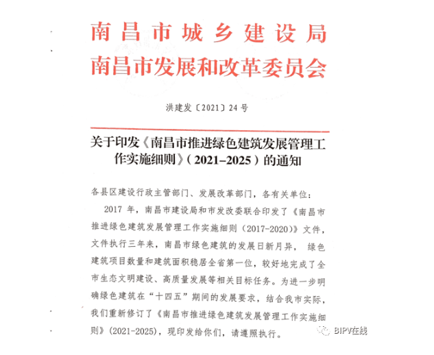 《南昌市推進(jìn)綠色建筑發(fā)展管理工作實(shí)施細(xì)則(2021-2025)》文件指出,大型公共建筑的建設(shè)單位應(yīng)當(dāng)根據(jù)項(xiàng)目條件,擇優(yōu)選擇一種適宜的可再生能源技術(shù),用于建筑采暖、制冷、照明和熱水供應(yīng)等。引導(dǎo)和推動(dòng)下列可再生能源技術(shù)和系統(tǒng)的應(yīng)用,包括:有條件的建設(shè)項(xiàng)目?jī)?yōu)先采用地源熱泵系統(tǒng);大型屋面和建筑幕墻使用太陽能光伏發(fā)電與建筑一體化技術(shù)。