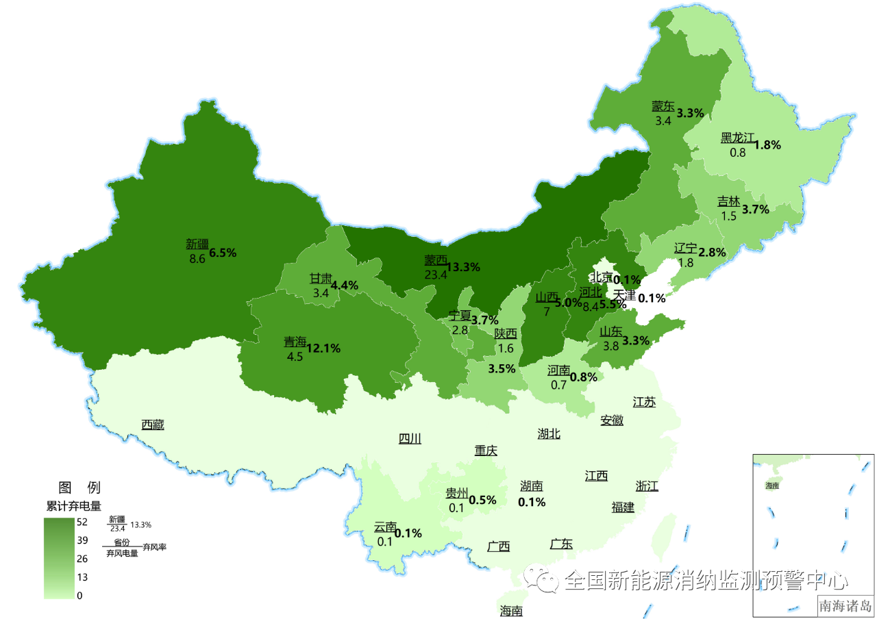 中東部和南方地區(qū)總體消納情況較好,部分地區(qū)出現(xiàn)少量棄風(fēng)棄光。
