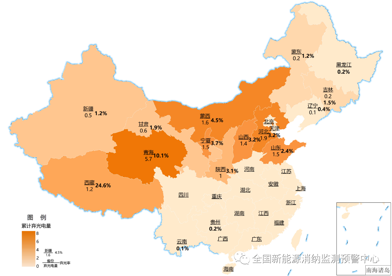 截至3月底各地區(qū)累計(jì)棄光電量(億千瓦時(shí))及棄光率