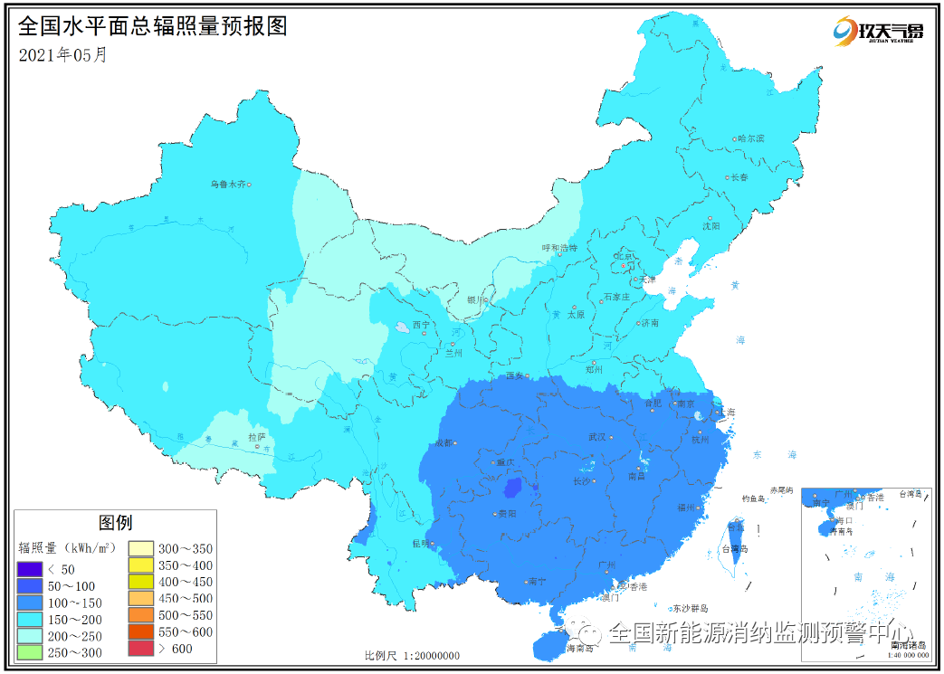 附圖4 全國(guó)2021年5月水平面總輻照量預(yù)報(bào)圖