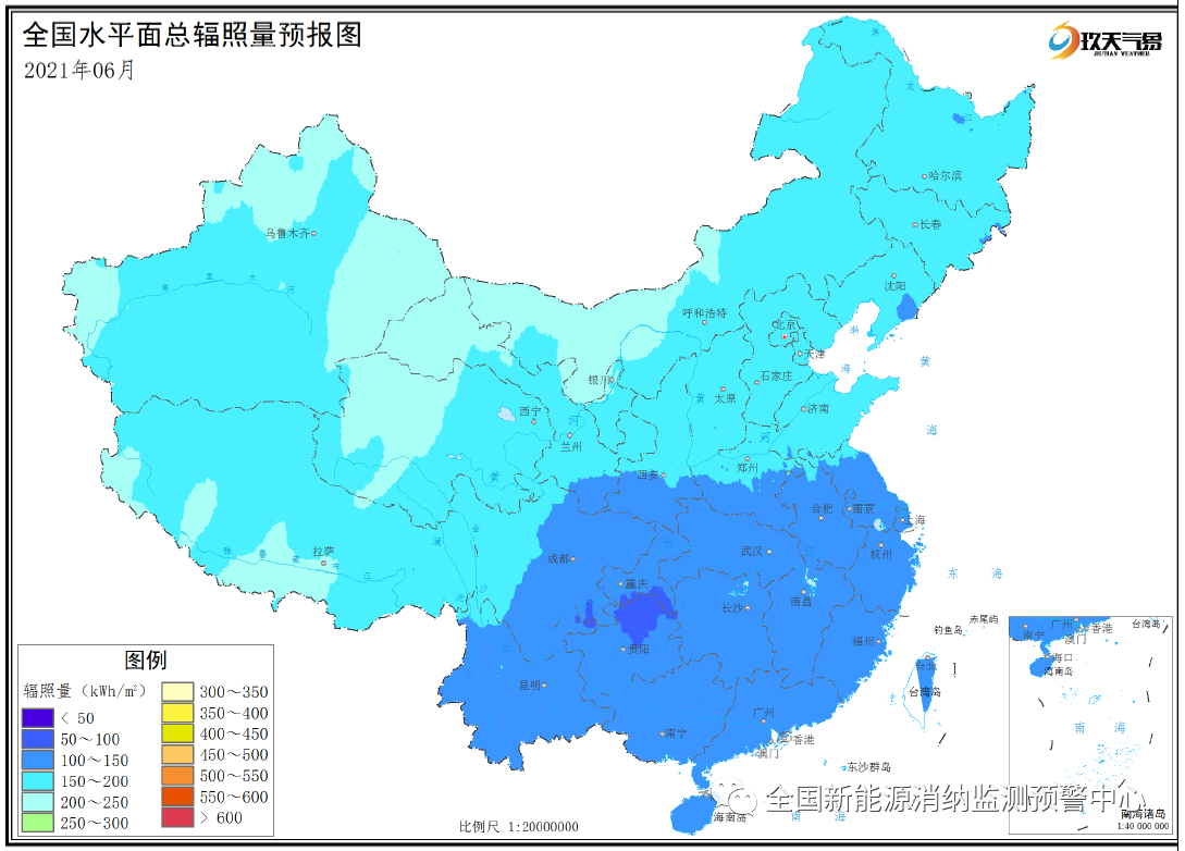 附圖6 全國(guó)2021年6月水平面總輻照量預(yù)報(bào)圖