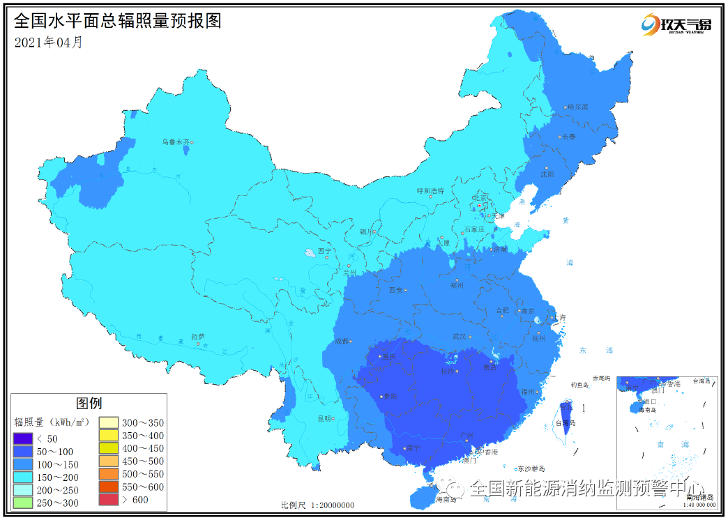 附圖2 全國(guó)2021年4月水平面總輻照量預(yù)報(bào)圖