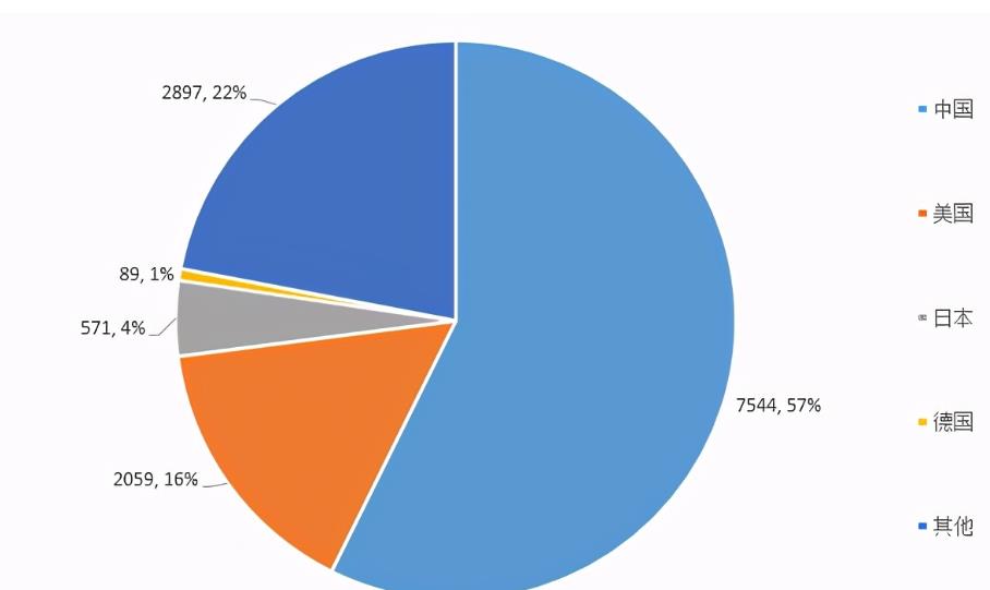 圖3 全球新能源技術(shù)專(zhuān)利申請(qǐng)數(shù)量及占比分布情況(2018年)數(shù)據(jù)來(lái)源:IRENA,中國(guó)人民大學(xué)重陽(yáng)金融研究院作者制圖