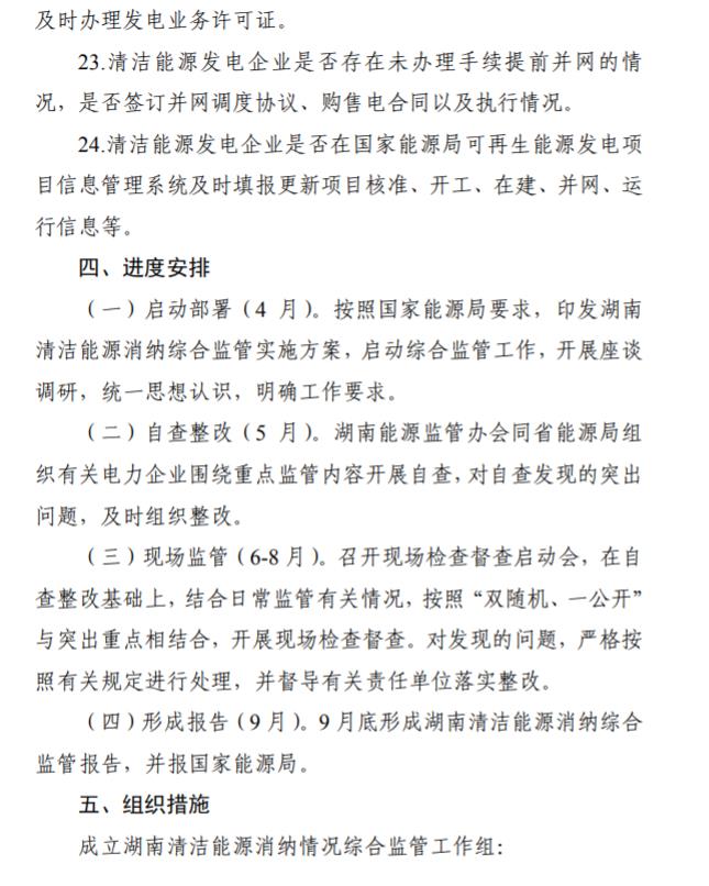 湖南能源監(jiān)管辦近日印發(fā)《湖南清潔能源消納情況綜合監(jiān)管實(shí)施方案》的通知,督促落實(shí)國家清潔能源消納政策,監(jiān)督檢查湖南清潔能源消納目標(biāo)任務(wù)及可再生能源消納責(zé)任權(quán)重完成情況,落實(shí)國家清潔能源并網(wǎng)接入和全額保障性收購政策,推動(dòng)清潔能源優(yōu)化調(diào)度,規(guī)范、促進(jìn)清潔能源參與省內(nèi)和跨省區(qū)電力市場(chǎng)交易,及時(shí)發(fā)現(xiàn)清潔能源發(fā)展中存在的突出問題,研究制