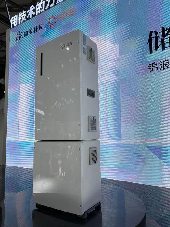 在錦浪科技的展臺(tái)中央則擺放著一臺(tái)“雙門(mén)立式大冰箱”,其實(shí)是公司推出的儲(chǔ)能新品——光儲(chǔ)一體機(jī)。其將逆變器、電池和開(kāi)關(guān)單元等設(shè)備集成于僅0.5立方米的空間內(nèi),可便于現(xiàn)場(chǎng)快速安裝,易于后期維護(hù),同樣是一種智能、便捷的光伏儲(chǔ)能解決方案。