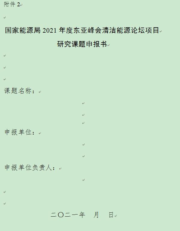 根據(jù)能源國(guó)際合作研究工作需要,按照國(guó)家能源局有關(guān)規(guī)定,現(xiàn)將國(guó)家能源局2021年度東亞峰會(huì)清潔能源論壇項(xiàng)目課題招標(biāo)有關(guān)事項(xiàng)公告如下:一、投標(biāo)要求(一)投標(biāo)主體投標(biāo)主體應(yīng)為中華人民共和國(guó)境內(nèi)(港澳臺(tái)除外)的大專(zhuān)院校、科研院所、企業(yè)、行業(yè)協(xié)會(huì)等經(jīng)審查符合投標(biāo)資格的單位。多家單位可聯(lián)合申報(bào)。(二)投標(biāo)人資格1. 投標(biāo)人應(yīng)具有良