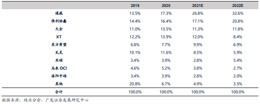 之后在2009年發(fā)生的產(chǎn)能過(guò)剩,導(dǎo)致價(jià)格大幅回落,使多晶硅發(fā)展陷入了泥潭。直到2020年之前,硅料始終都沒(méi)能成為限制產(chǎn)業(yè)發(fā)展的瓶頸。因此資本對(duì)這個(gè)領(lǐng)域的投資熱情不大,介入度不高,在需求大幅上升的本輪行情,行業(yè)再次上演了擁硅為王的劇情。