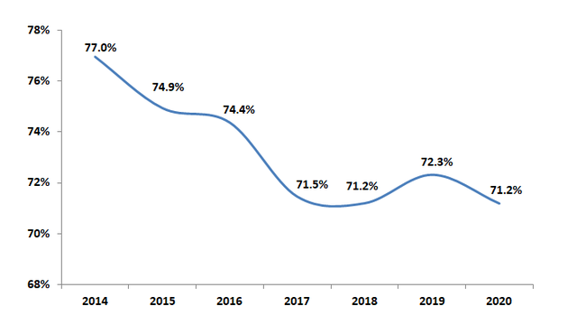 圖:中國火力發(fā)電量占全國發(fā)電量的比例逐步減少,資料來源:中電聯(lián),國家統(tǒng)計局