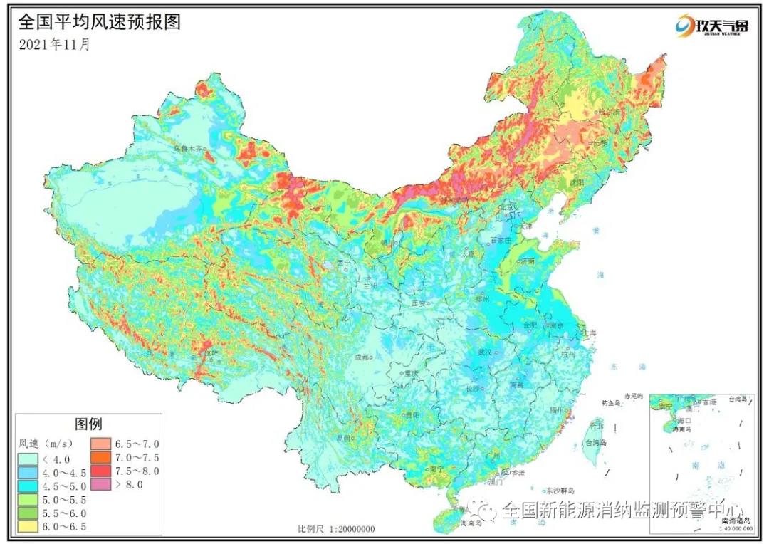 附圖3 全國2021年11月平均風(fēng)速分布預(yù)報圖