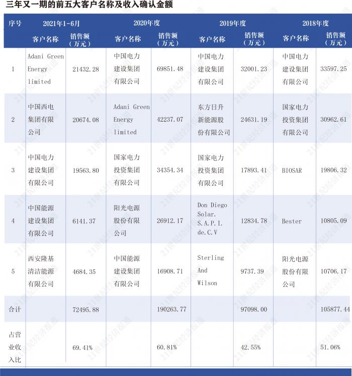 可以看到,2018-2020年其前五大客戶中,除了中國(guó)電力建設(shè)集團(tuán)、國(guó)家電力投資集團(tuán)這2家比較穩(wěn)定外,其他均有變換;尤其是其中的境外客戶每年都不一樣。