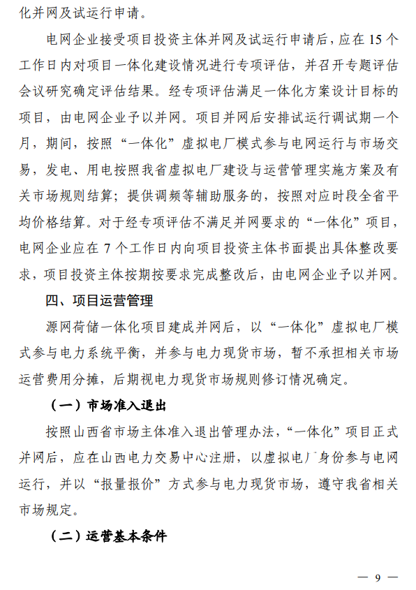 從山西省能源局獲悉,近日,山西省能源局印發(fā)《源網(wǎng)荷儲(chǔ)一體化項(xiàng)目管理辦法》,明確了“一體化”項(xiàng)目中源、網(wǎng)、荷、儲(chǔ)各要素應(yīng)滿足的關(guān)鍵指標(biāo)及要求,重點(diǎn)指導(dǎo)推進(jìn)市縣級(jí)、園區(qū)級(jí)源網(wǎng)荷儲(chǔ)一體化項(xiàng)目,嚴(yán)守“一體化”項(xiàng)目要求底線,堅(jiān)持七個(gè)方面的一體化要求,通過源荷互動(dòng)大幅提升新能源消納能力,促進(jìn)能源轉(zhuǎn)型和綠色發(fā)展。