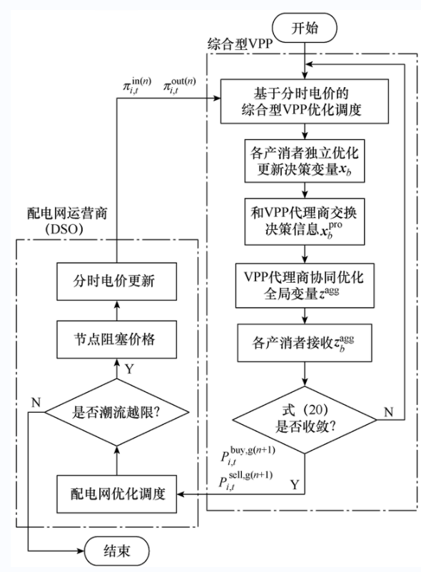 同時,考慮多虛擬電廠接入配電網(wǎng)可能引發(fā)的潮流越限問題,基于阻塞價格更新分時電價,進(jìn)而引導(dǎo)虛擬電廠調(diào)整最優(yōu)出力策略,協(xié)助配電網(wǎng)安全運行,為當(dāng)前多虛擬電廠與配電網(wǎng)的協(xié)同優(yōu)化調(diào)度提供解決方案。
