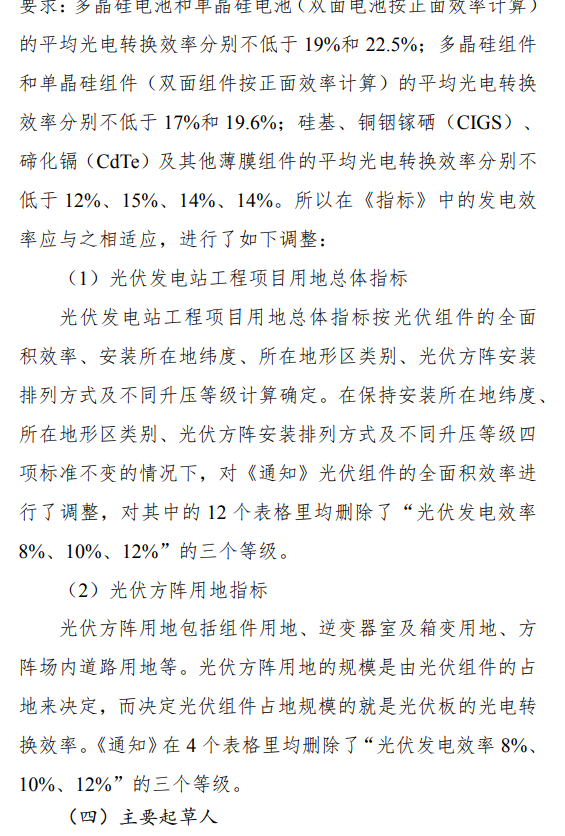按照自然資源行業(yè)標(biāo)準(zhǔn)制定程序要求和計(jì)劃安排,自然資源部組織有關(guān)單位制定了《光伏發(fā)電站工程項(xiàng)目用地控制指標(biāo)》等3項(xiàng)行業(yè)標(biāo)準(zhǔn),F(xiàn)已通過(guò)全國(guó)自然資源與國(guó)土空間規(guī)劃標(biāo)準(zhǔn)化技術(shù)委員會(huì)審查,擬公示后報(bào)部審定發(fā)布實(shí)施,現(xiàn)予公示,公示時(shí)間為5個(gè)工作日。同時(shí),自然資源部就《光伏發(fā)電站工程項(xiàng)目用地控制指標(biāo)》(報(bào)批稿)作了編制說(shuō)明