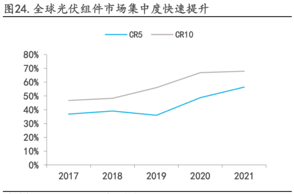 光伏組件集中度;數(shù)據(jù)來源:安信證券