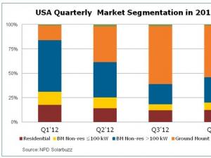 太陽能發(fā)電網(wǎng)訊 根據(jù)最新出版的NPD Solarbuzz北美光伏市場季度報告,2012年下半年美國光伏市場大型非住宅項目和公用事業(yè)電站項目的市場份額將進一步擴大,而第三方所有權模式的推廣決定了各個州的住宅市場份額。