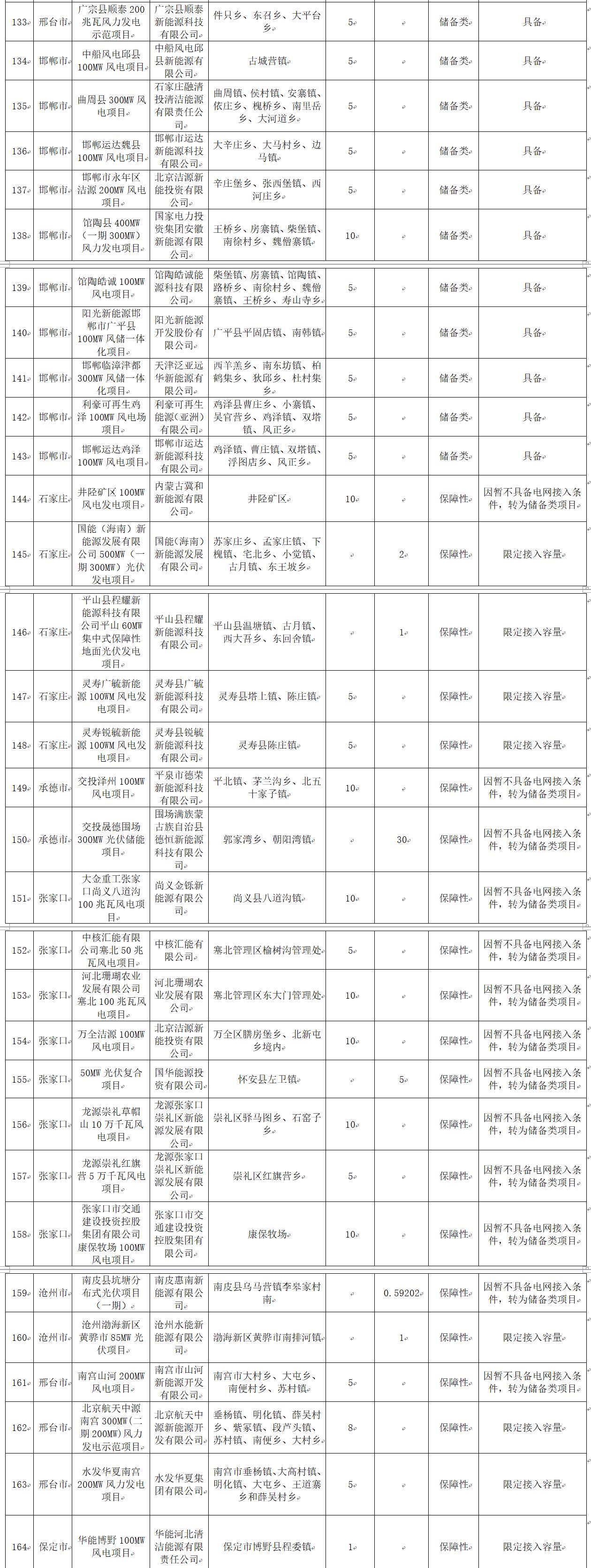 6月29日,河北省發(fā)改委發(fā)布《河北省風(fēng)電、光伏發(fā)電年度開(kāi)發(fā)建設(shè)方案擬安排項(xiàng)目情況公示》,本次擬公示保障性項(xiàng)目共159個(gè)、1480.849萬(wàn)千瓦,市場(chǎng)化項(xiàng)目共56個(gè)、597.588萬(wàn)千瓦(多能互補(bǔ)33個(gè)、302.8萬(wàn)千瓦,源網(wǎng)荷儲(chǔ)23個(gè)、294.788萬(wàn)千瓦),儲(chǔ)備類(lèi)項(xiàng)目共180個(gè)、1934.21702萬(wàn)千