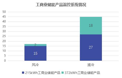 據(jù)EESA統(tǒng)計(jì),在9月舉辦的EESA儲(chǔ)能展上,215kWh工商業(yè)儲(chǔ)能產(chǎn)品中共計(jì)約27家使用了液冷溫控技術(shù)解決方案,15家使用了風(fēng)冷溫控技術(shù)解決方案;372kWh工商業(yè)儲(chǔ)能產(chǎn)品中,使用液冷溫控技術(shù)解決方案企業(yè)共18家,風(fēng)冷溫控技術(shù)解決方案企業(yè)共2家。