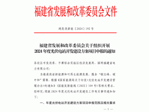 福建省發(fā)展和改革委員會關(guān)于組織開展2024年度光伏電站開發(fā)建設(shè)方案項目申報的通知