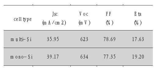 表一:銳秀單多晶電池I-V數(shù)據(jù)中值統(tǒng)計(jì)
